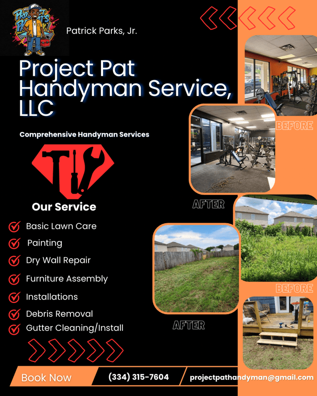 I had an overgrown back yard that no one would tackle. Project Pat Handyman Services handled it. They showed up when they said they would (which is rare these days!) and got the job done in half a day. The next week they took care of my clogged gutters. Quick, reliable, professional attitude, and fair pricing.